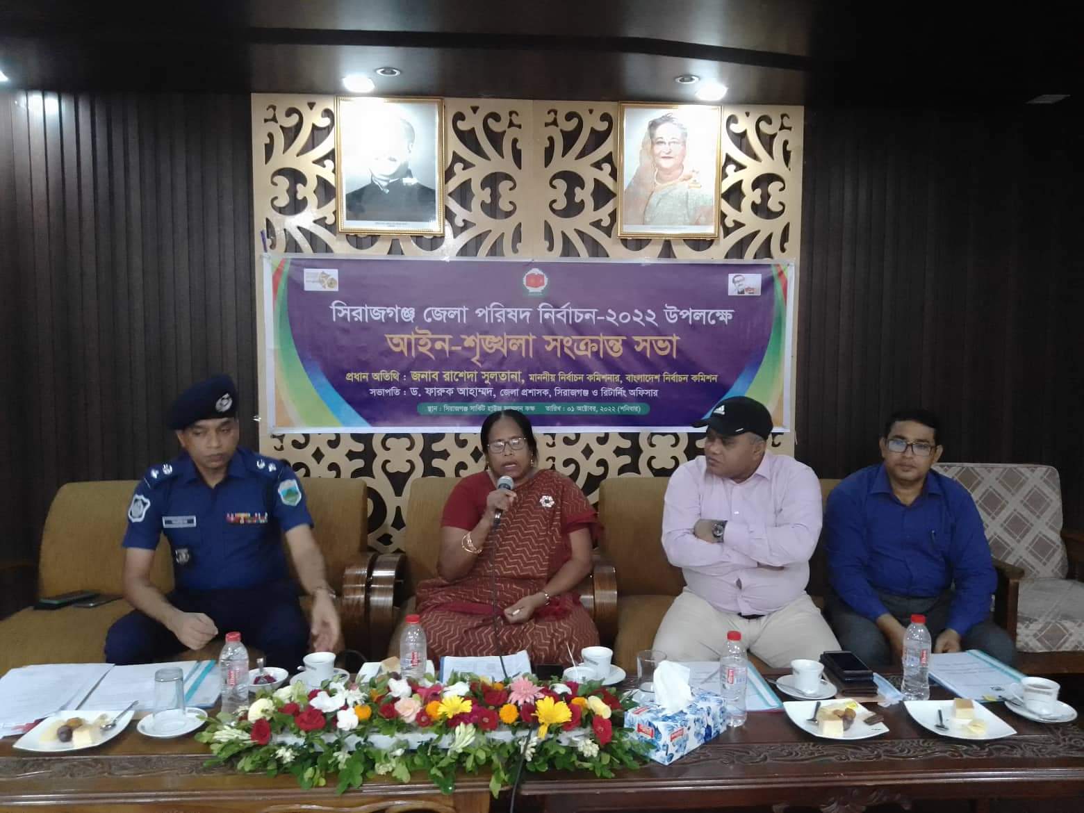 আজিজুর রহমান মুন্না, সিরাজগঞ্জ ঃ আগামী ১৭ অক্টোবর সিরাজগঞ্জ জেলা পরিষদের নির্বাচন অবাধ ও সুষ্ঠু, নির্বাচন নিশ্চিত করা হবে বলে জানিয়েছেন বাংলাদেশ নির্বাচন কমিশনার রাশেদা সুলতানা। শনিবার (১ অক্টোবর)বেলা